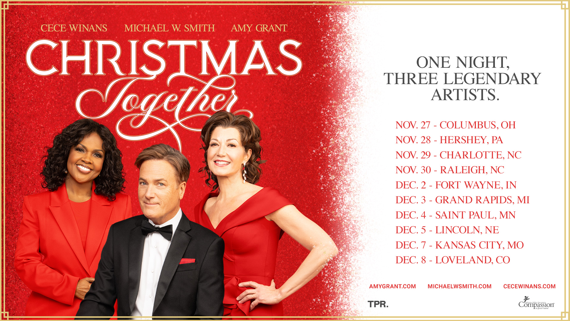 NASHVILLE, TN, UNITED STATES, April 24, 2026 /EINPresswire.com/ — Following a celebrated inaugural run that captivated audiences across the country, Christmas Together, featuring three of Christian music’s most beloved and enduring voices, Amy Grant, Michael W. Smith, and CeCe Winans, returns this holiday season with an exciting new chapter. In response to overwhelming demand, the 2026 tour will expand into arenas nationwide, marking a significant step up in scale and reach for one of the season’s most cherished concert experiences.